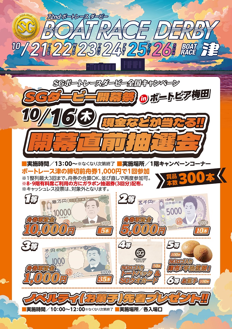 10月16日(木) BR津 SGボートレースダービー開幕直前抽選会開催!