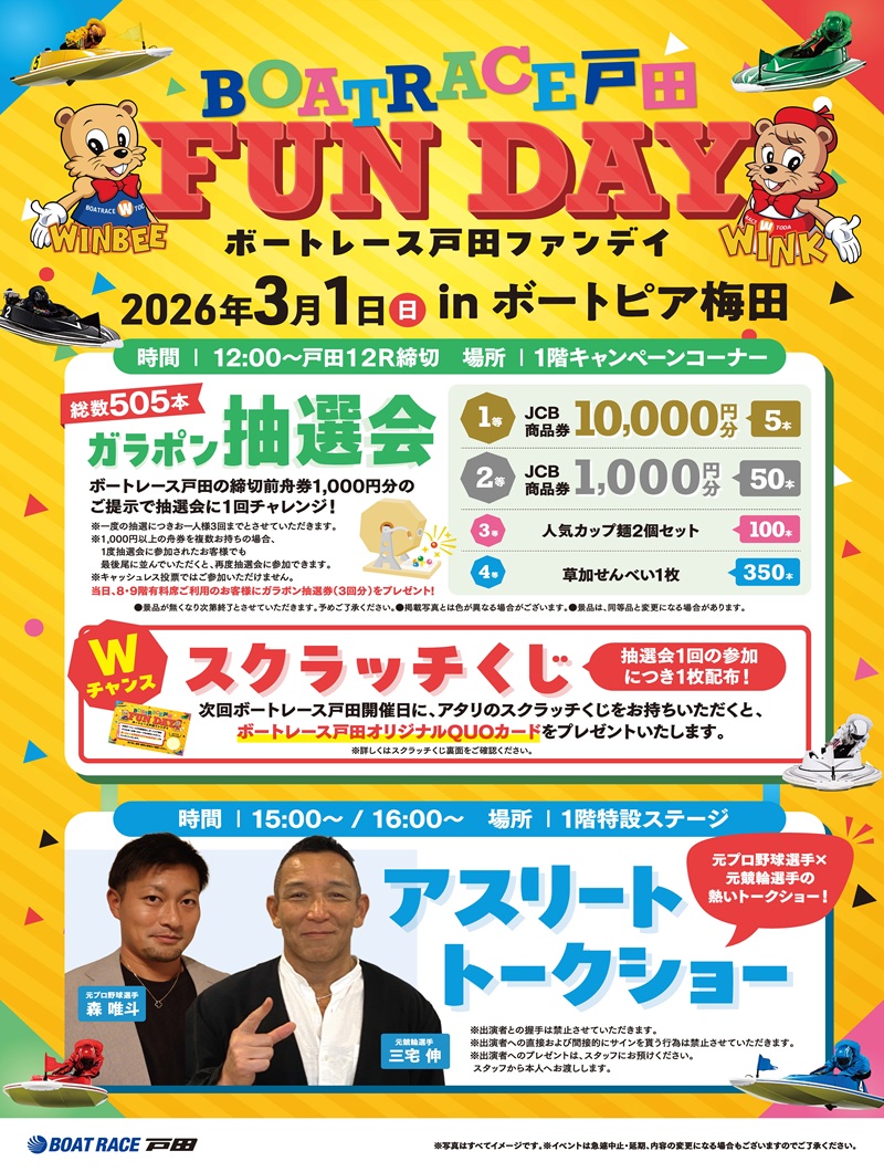 3月1日(日) ボートレース戸田ファンデイinボートピア梅田開催!!