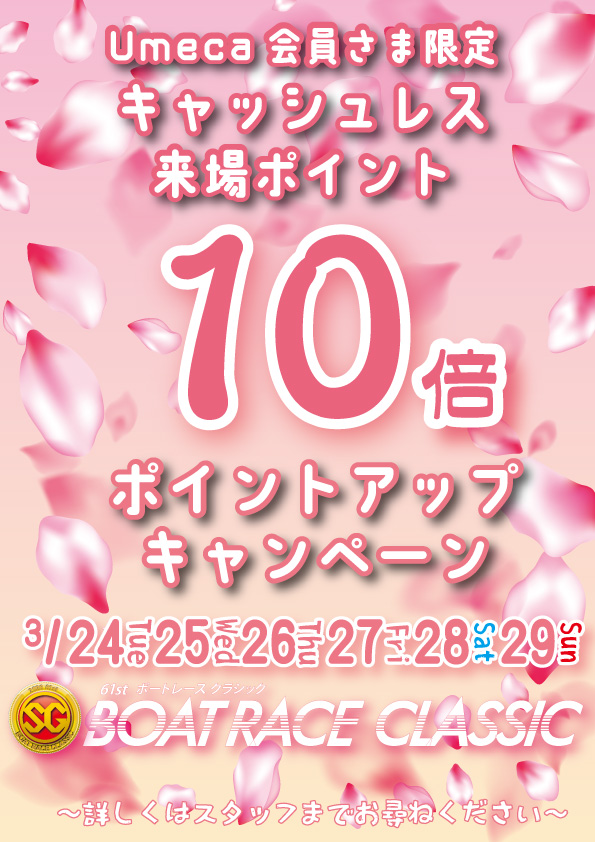 令和8年3月24日(火)~令和8年3月29日(日)の期間中、来場ポイントが「10倍」になります。