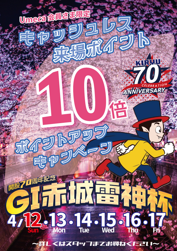 令和8年4月12日(日)~令和8年4月17日(金)の期間中、来場ポイントが「10倍」になります。