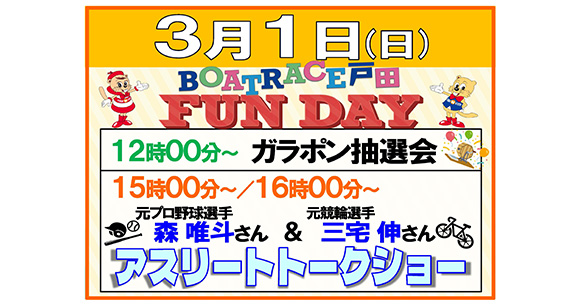 - 3月1日(日) ボートレース戸田ファンデイinボートピア梅田開催!!