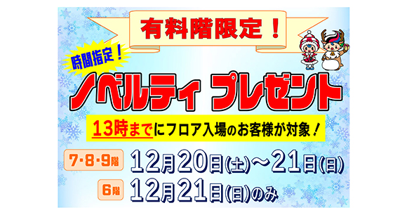 - 12月13日(土) ~【7・8・9階有料席限定】レディースグッズプレゼント!