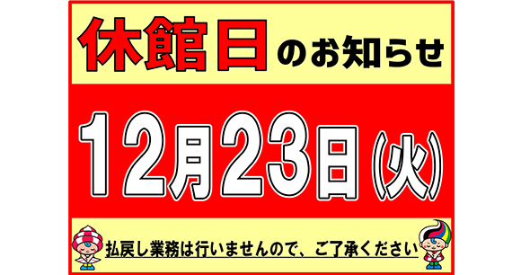 - 12月23日(火) 休館日のお知らせ