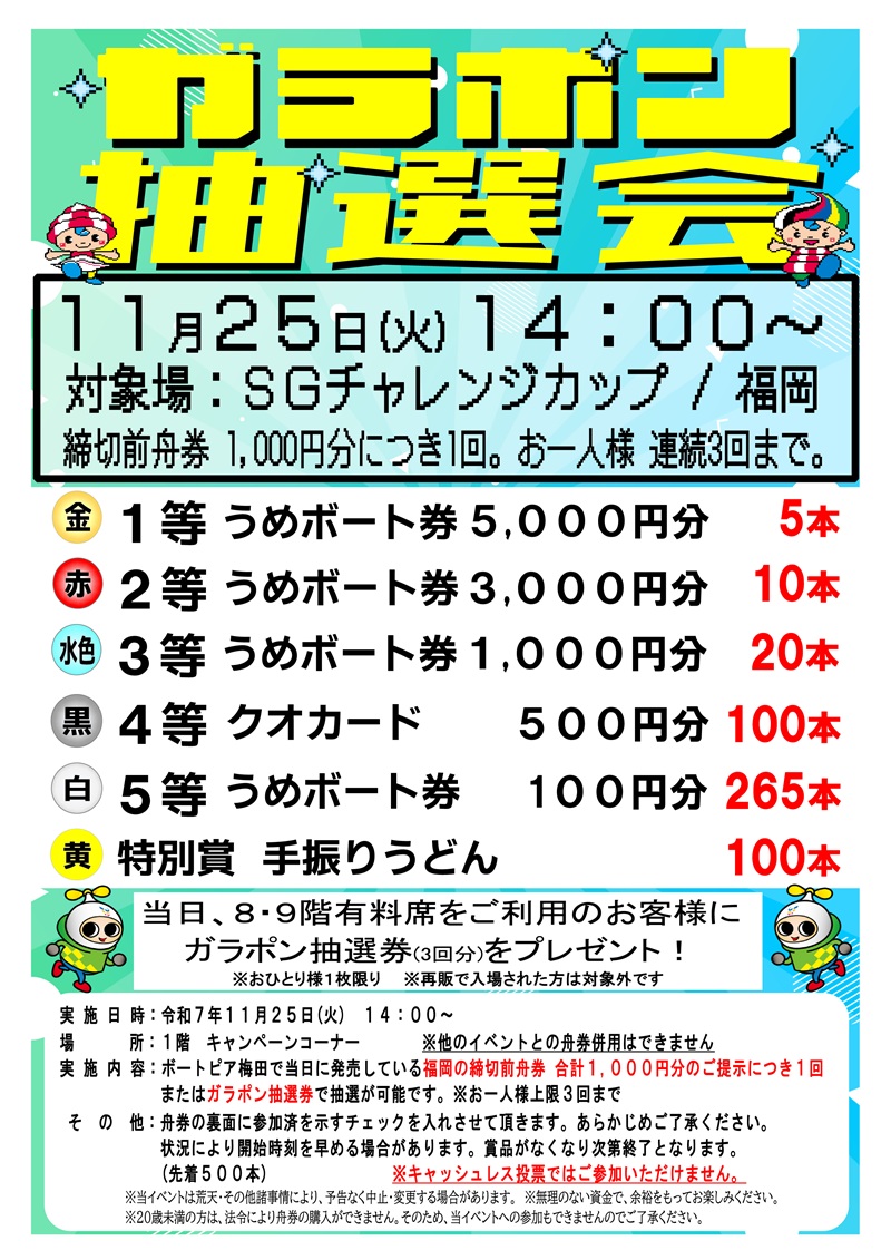 11月25日(火) SGチャレンジカップ福岡 ガラポン抽選会開催!