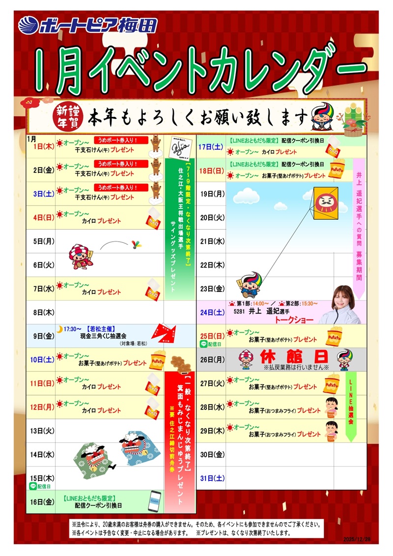 ボートピア梅田LINE公式アカウントでは、お知らせやイベント情報などを随時配信しています。